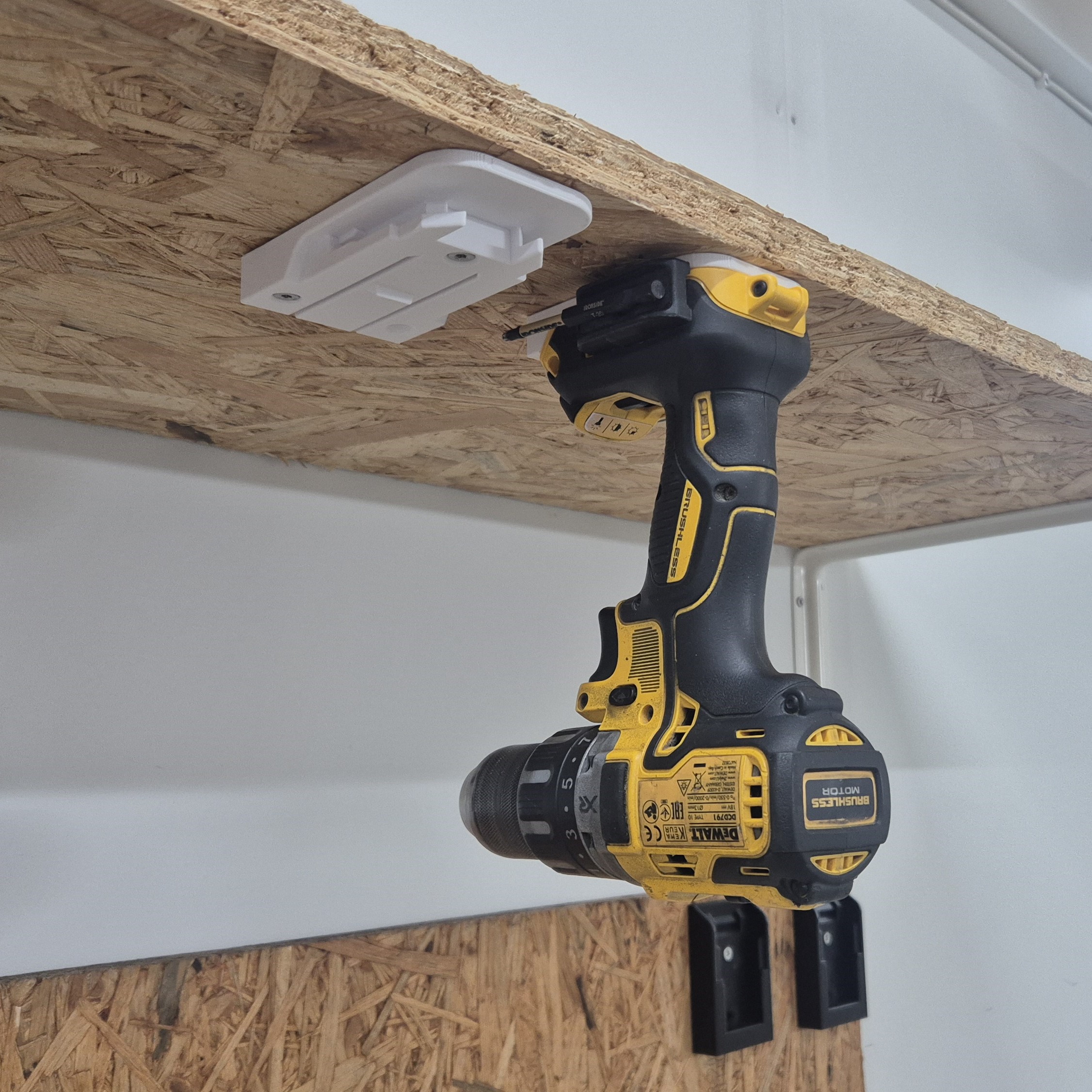 Pidä Dewalt XR -koneesi ja työkalusi järjestyksessä tällä suomessa valmistetulla ja pienyrittäjän suunnittelemalla konetelineellä. Kone kiilautuu paikalleen tiukasti, joten pieni tärinä ei konetta irroita. Tämä koneteline on suunniteltu helpottamaan työkalujen säilytystä ja parantamaan autotallin, varaston ja työpajan järjestystä.
